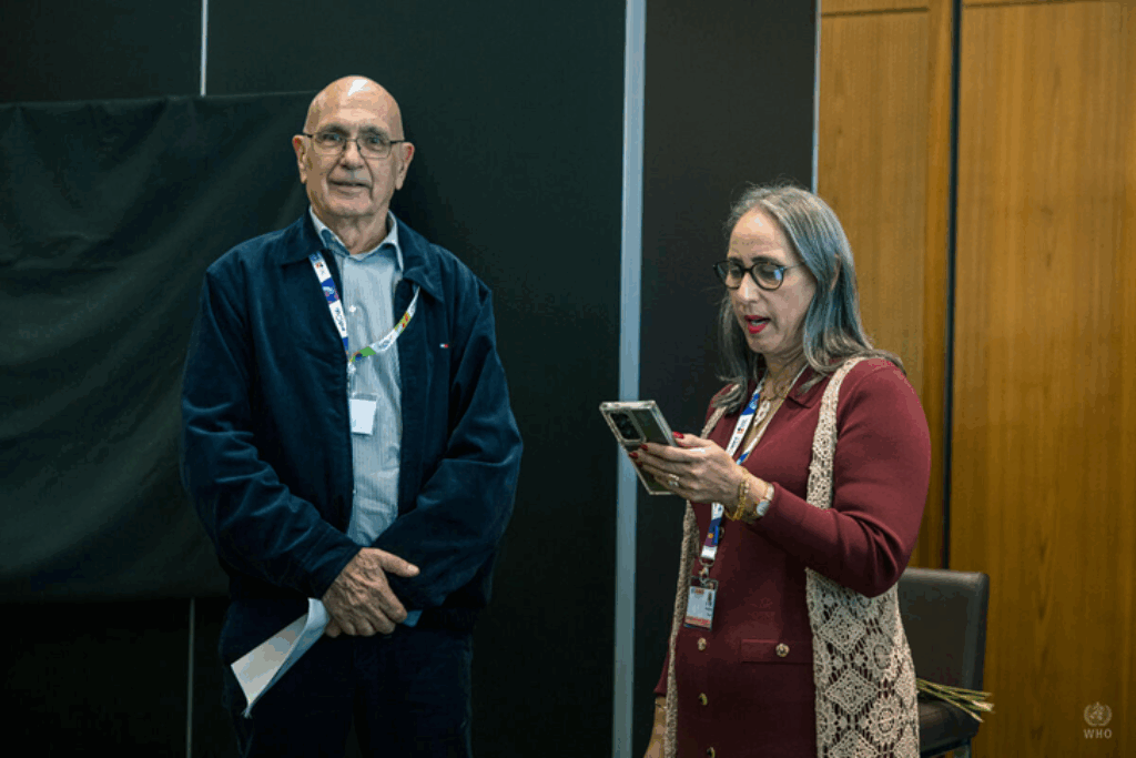 Dr. Reina Roa, Panama, Präsidentin der COP11, mit Pascal Diethelm, Präsident von OxySuisse, bei der Enthüllung der Death Clock, 17.11.2025. © Copyright World Health Organization (WHO), 2025. All Rights Reserved.